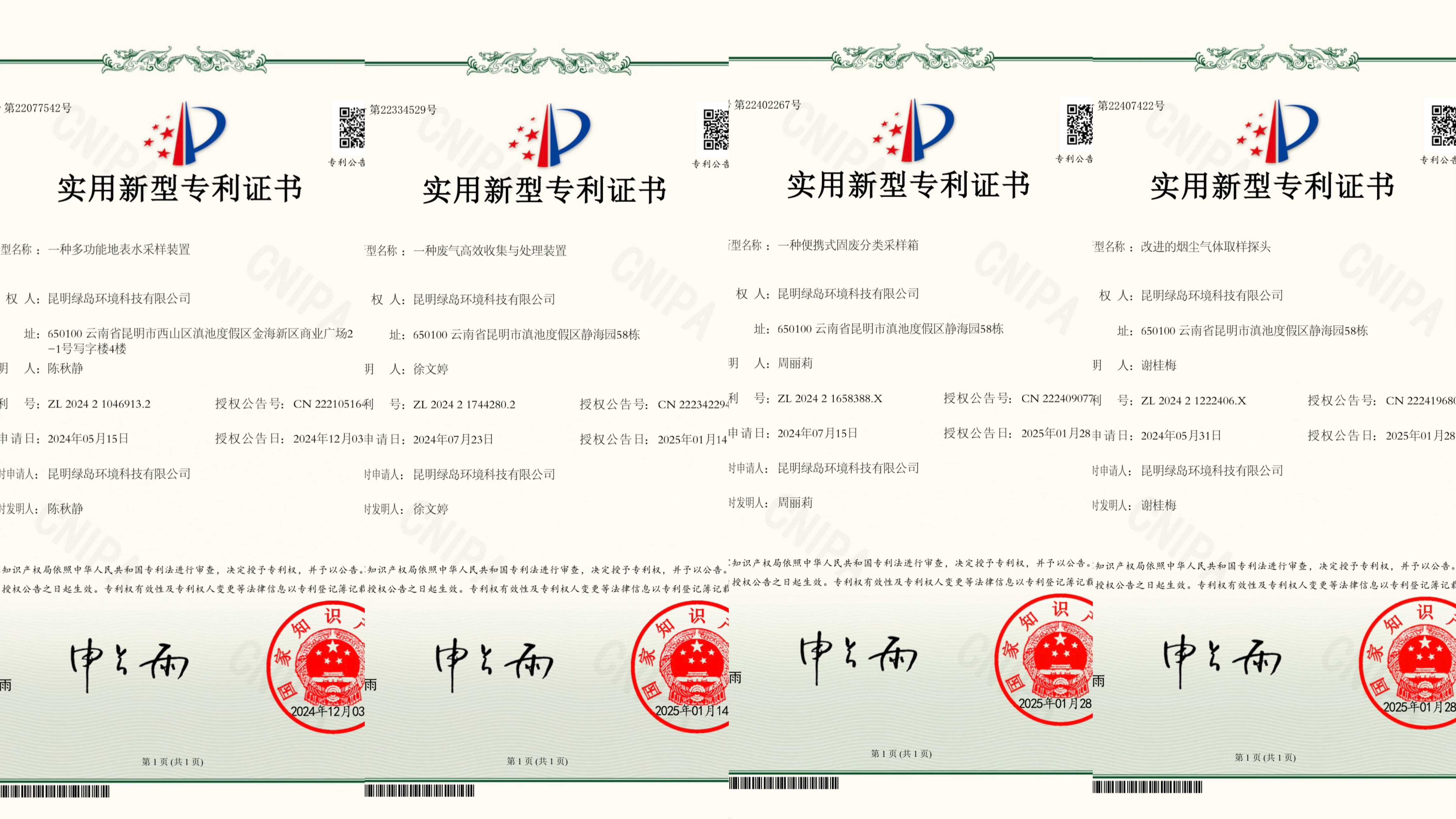昆明綠島環(huán)境科技有限公司四項專利申請喜獲國家知識產權局授權