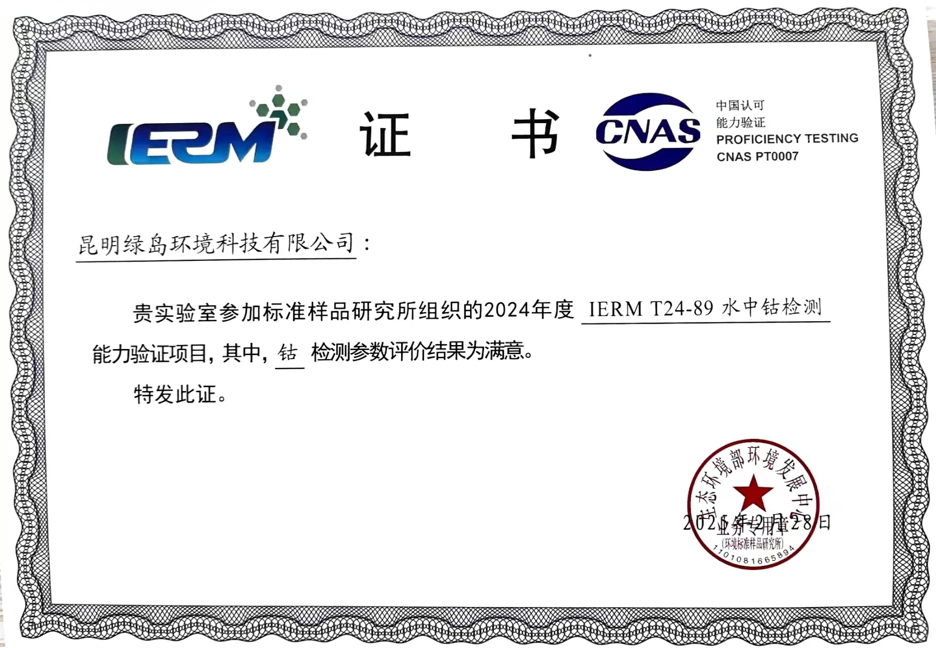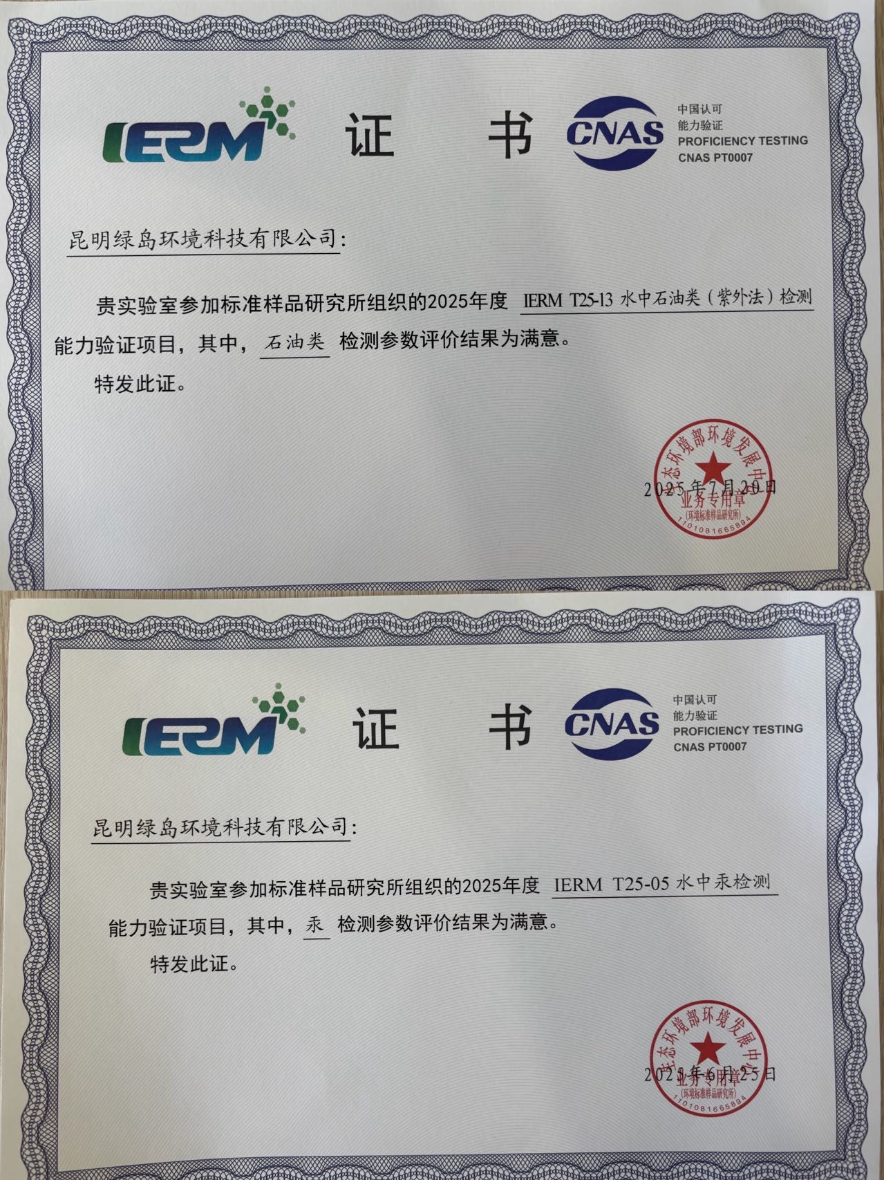 強化能力建設 夯實發(fā)展根基(四) ——昆明綠島環(huán)境科技有限公司喜獲2項能力驗證證書